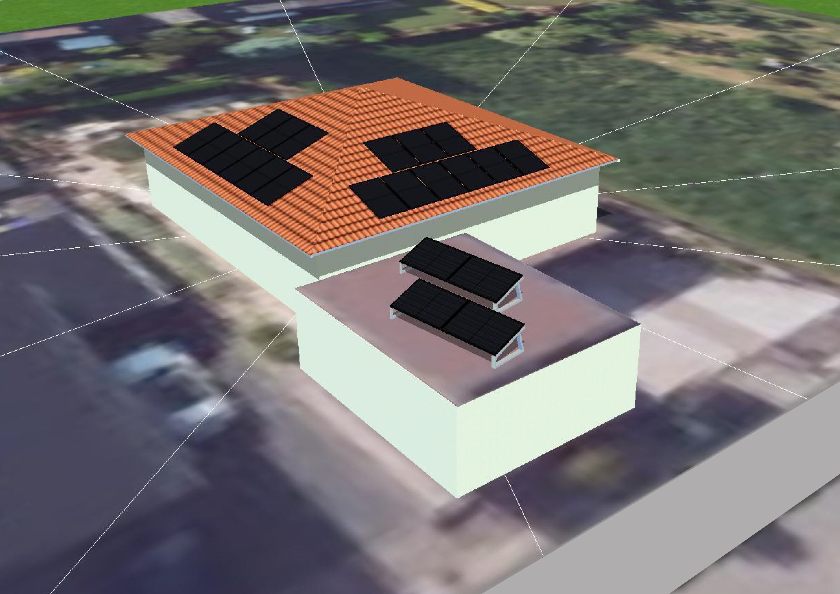 Die Ost / Westaufstellung auf einem Flachdach zu gleichmäßigen Lichtausbeute mit hohem Tagesertrag